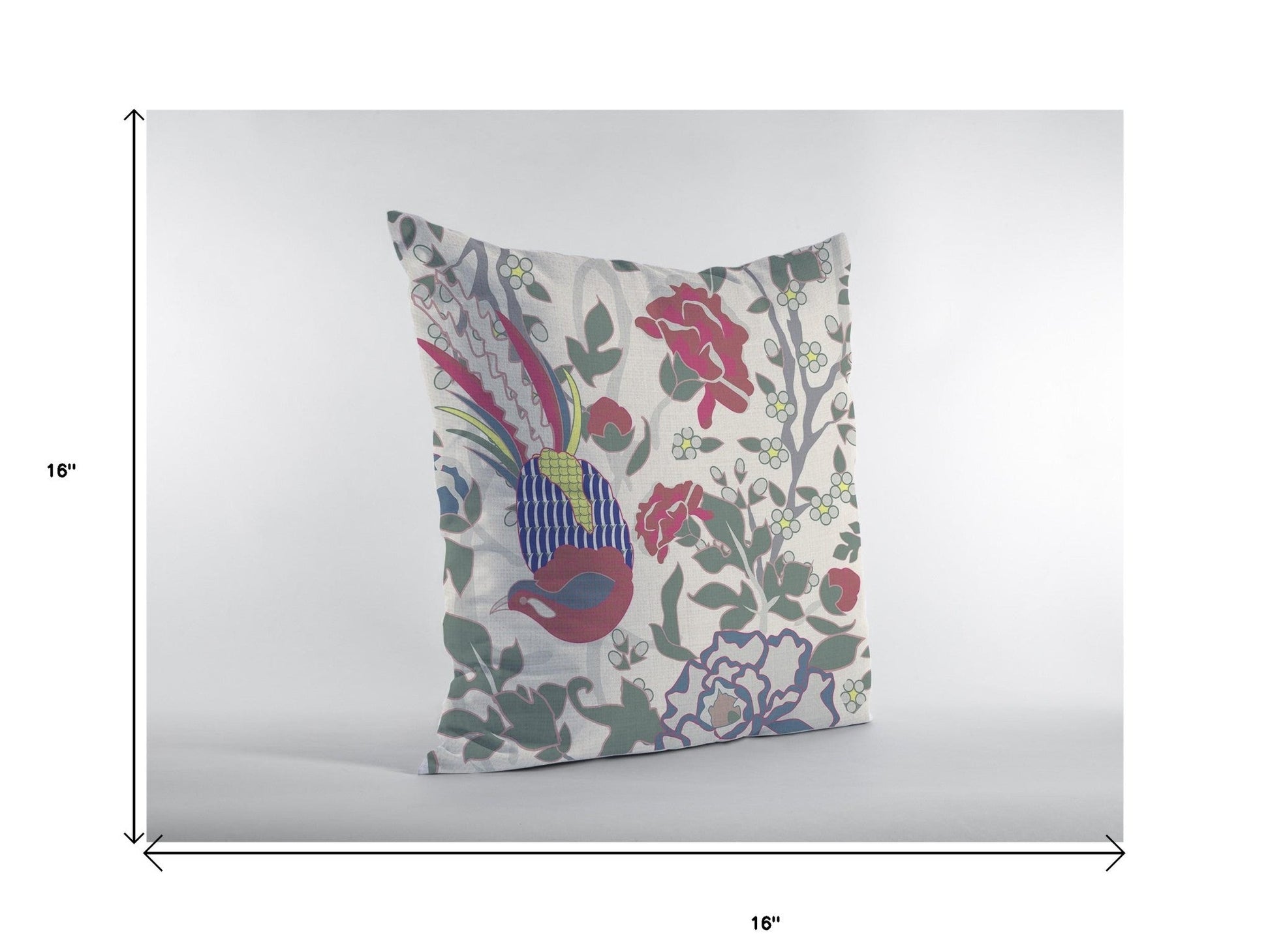 Combining botanical elements with an avian print, this Pink Sage Peacock Suede Throw Pillow is the perfect representation of spring to bring life into your bohemian-style home. Featuring sage green leafy elements with burgundy and gray-toned floral art combined with a multi-colored printed peacock against the white background makes for the perfect playground of spring elements all on a throw pillow. Made from high-quality suede fabric for a durable structure and premium feel, it's the perfect accent for adding a touch of class and comfort to your home. The polyfill insert makes it super soft and cozy with added fluffiness providing utmost comfort to your neck and back. The alluring print coupled with the cool-toned hues melds together to make this throw pillow a flawless piece of art, fit for any bohemian-inspired home. 16” x 16” x 5”