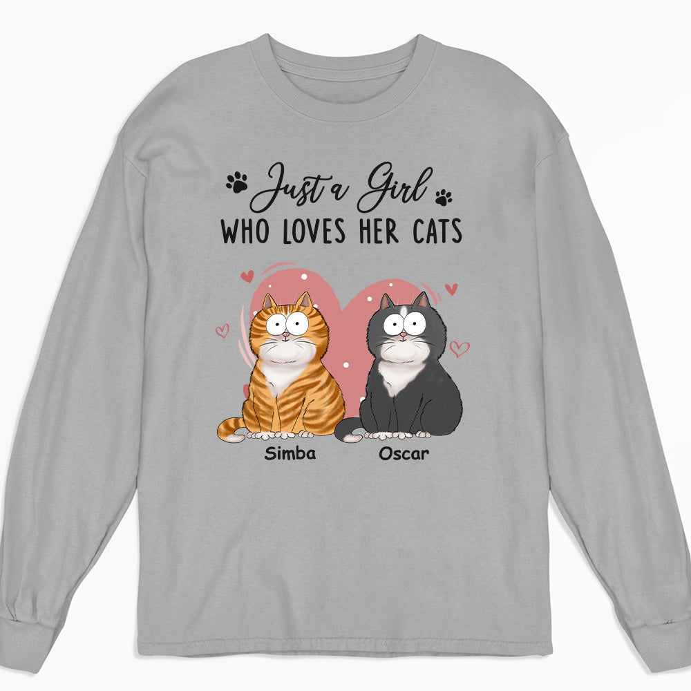 A Girl Loves Cats - Personalized Custom Long Sleeve T-shirt
