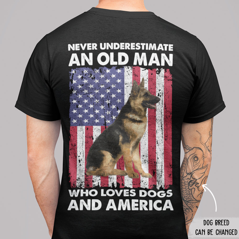 An Old Man Who Loves Dogs And America - Personalized Custom Unisex T-shirt