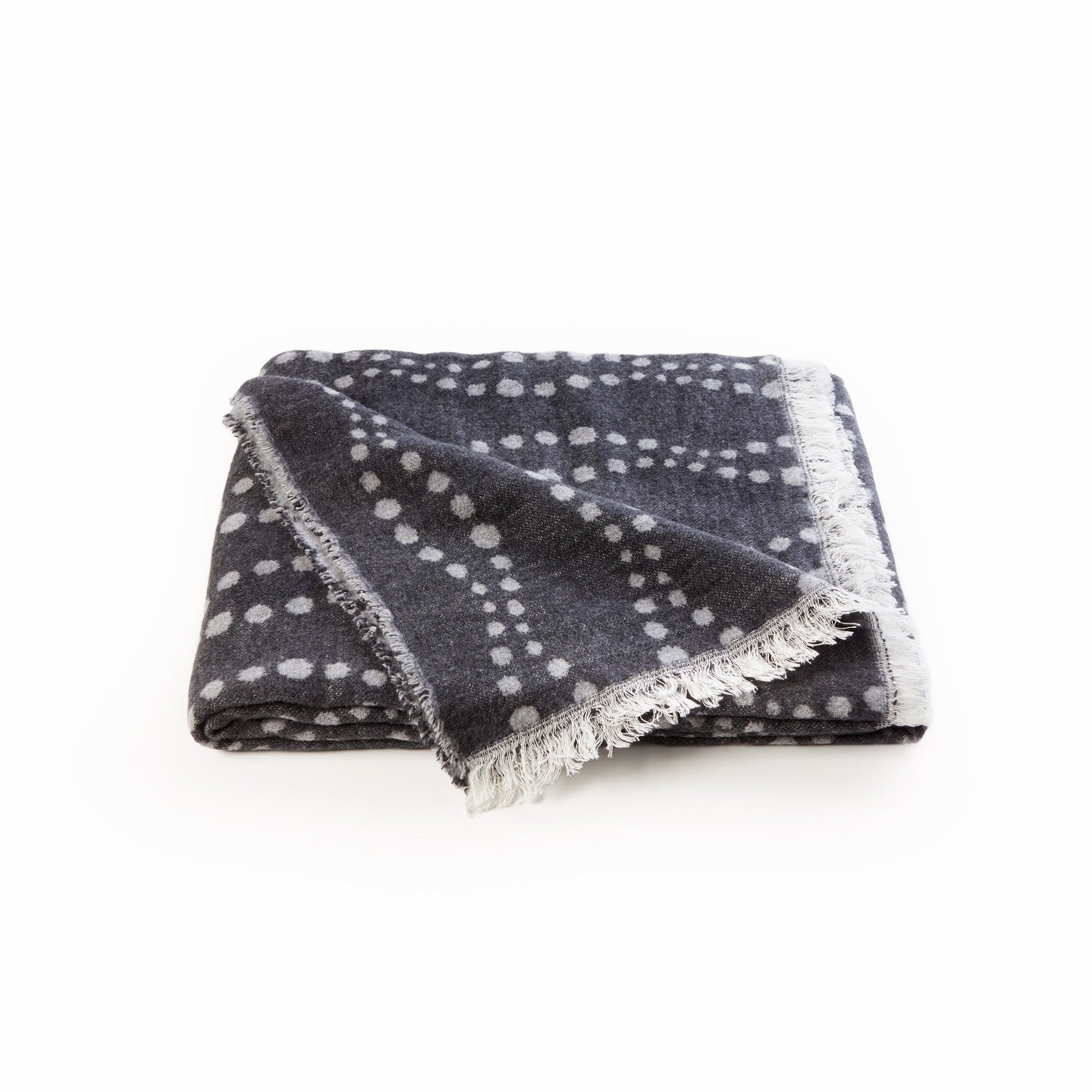 A pretty throw blanket, draped ever-so-effortlessly across the foot of a bed, over the arm of a chair, or along the back of a sofa, is often the finishing touch a room needs. And it's a real bonus when that throw is light, cuddly, and just the size for wrapping around your shoulders when you need an extra layer. Our Bancroft Throw is all these things and then some. Woven at a decades-old Italian mill of cotton, polyester, and acrylic, it features a dotted wave pattern on its body and fringe along two sides, and it comes in two lovely colors.