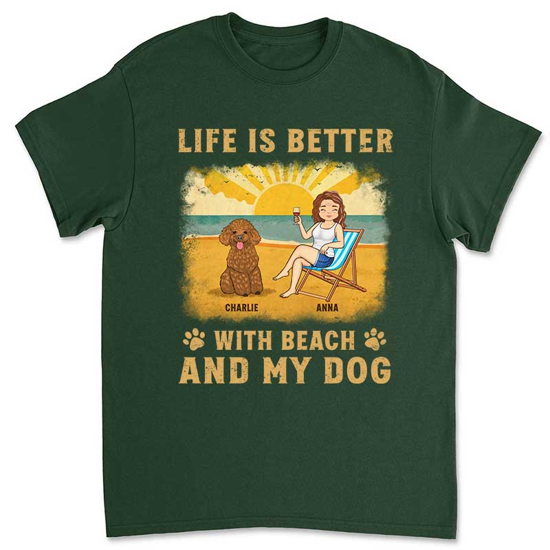 Beach And Dog - Personalized Custom Unisex T-shirt