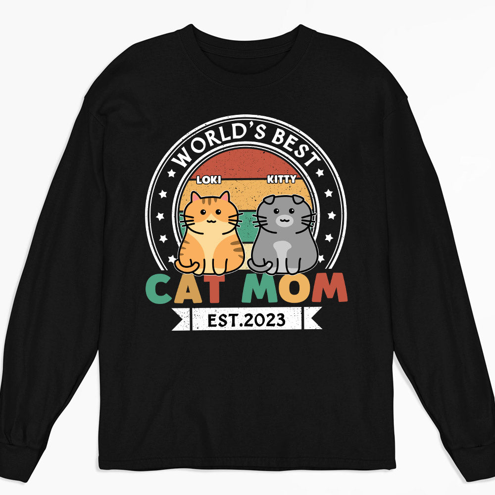 Best Cat Dad Est - Personalized Custom Long Sleeve T-shirt