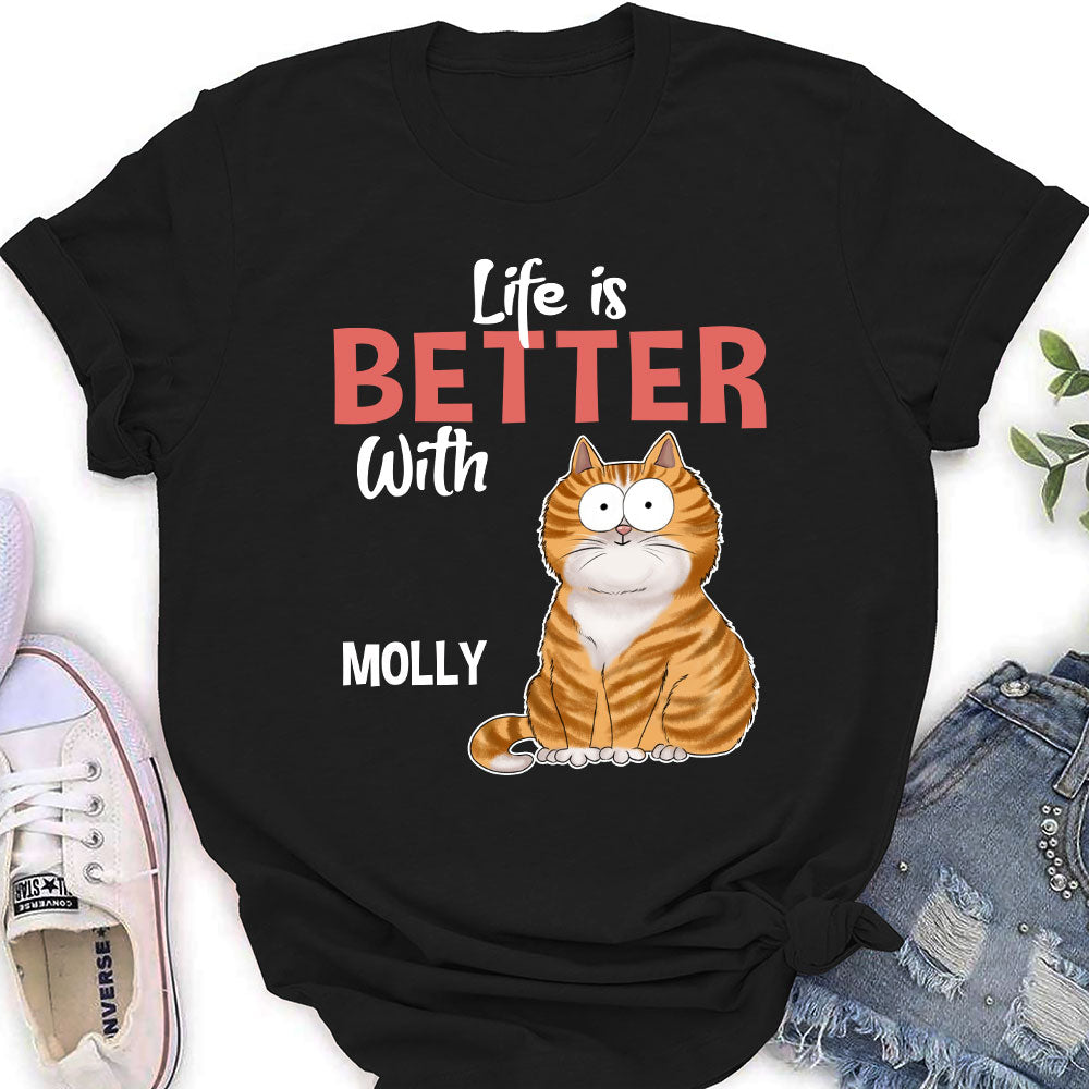 Better Life With Cat - Personalized Custom Women's T-shirt