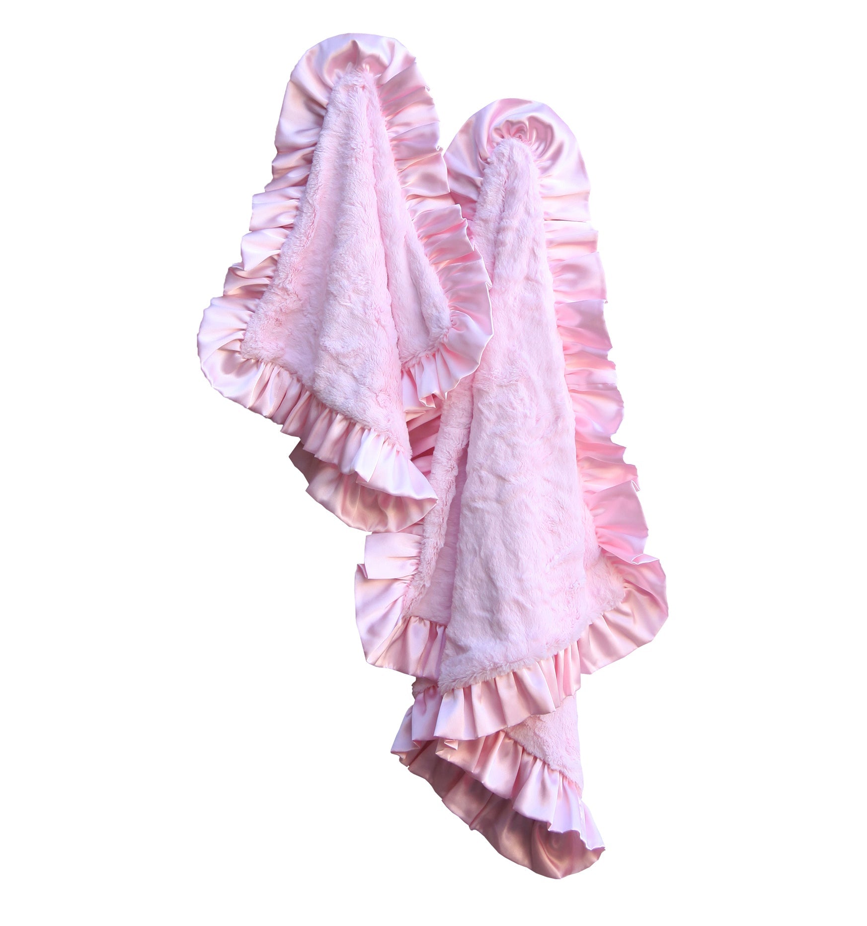 Trimmed with luxurious silky satin pink ruffle trim.