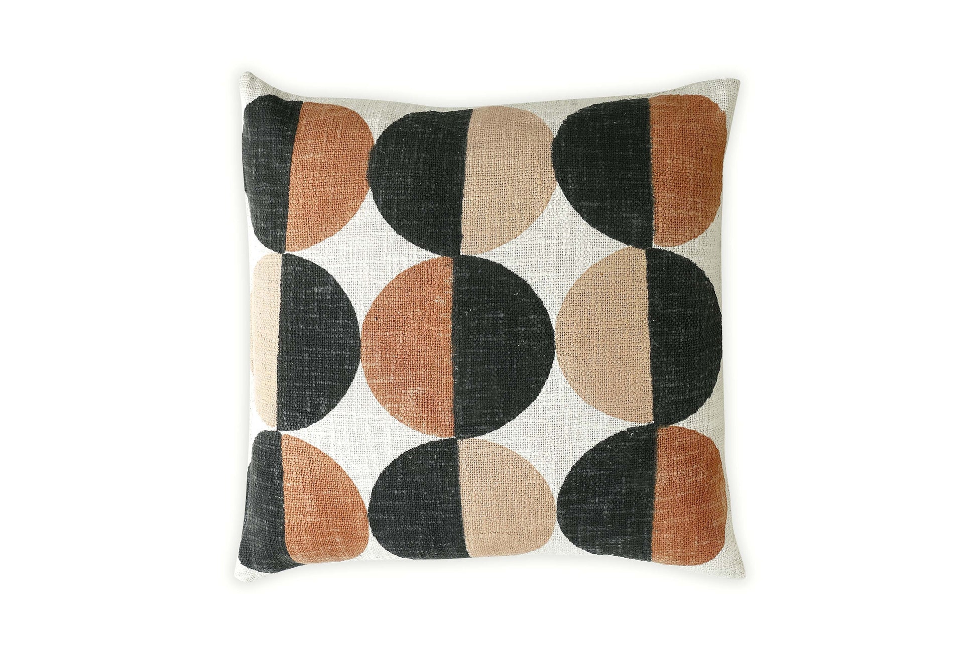 The Aakar Circle Throw Pillow is handprinted by artisans using traditional hand block printing techniques to bring you a colorful, modern design. This pillow is part of a collection inspired by medley of patterns and colors inspired by vintage of Indian architecture. Elements like jharokha, jaal, tiles, and stepwell are used as forms to leave an imprint using hand block and screen printing onto the soft, textured cotton.