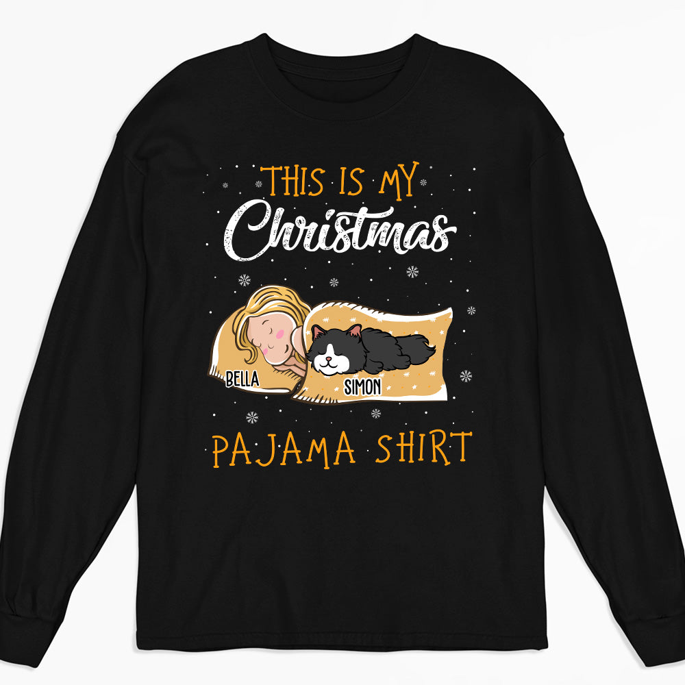 Cat Christmas Pajama Shirt - Personalized Custom Long Sleeve