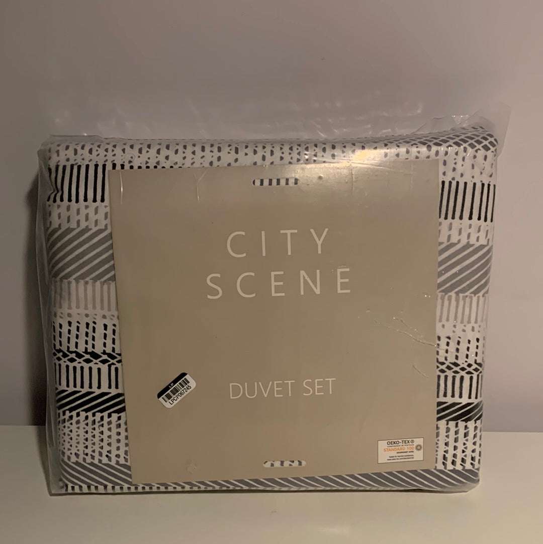 City Scene Wooster Stripe 3 Piece Duvet Cover Set, Full/Queen Bedding