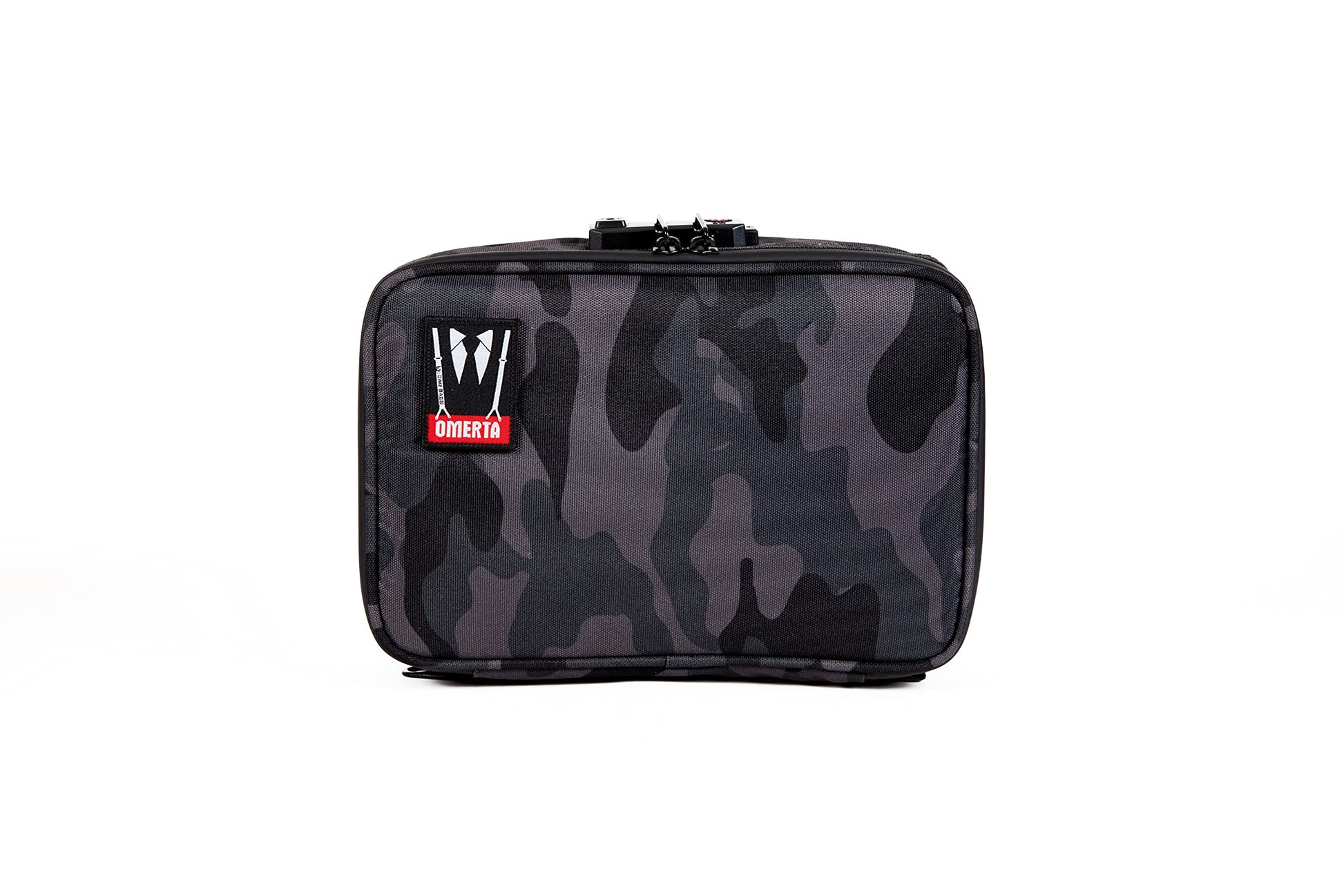DIME BAGS Omerta Goodfella with Lock | Carbon Filter Locking Padded Pod | Activated Carbon Technology and TSA-Approved Combination Lock (10 inch, Camo)