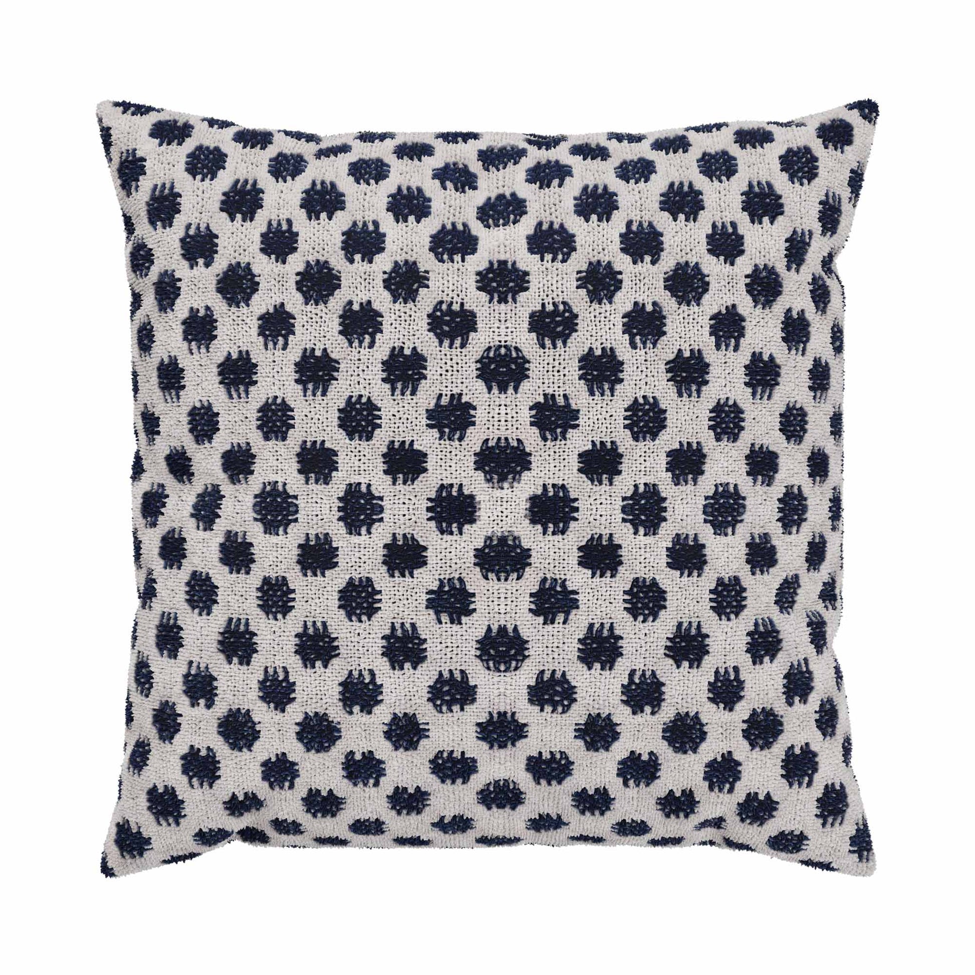 Blue and white polka dot linen pillow for a laid-back, versatile look. We love the minimalist design for an airy and neutral space.