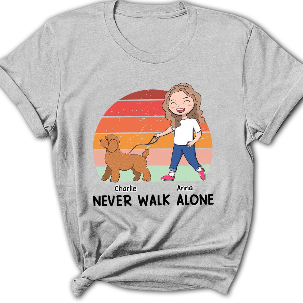 Dog And Mom Never Walk Alone - Personalized Custom Women's T-shirt
