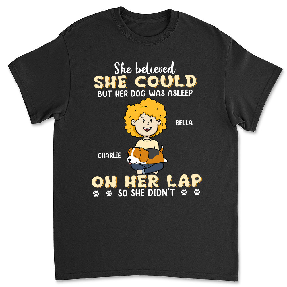 Dog Asleep On Lap - Personalized Custom Unisex T-shirt
