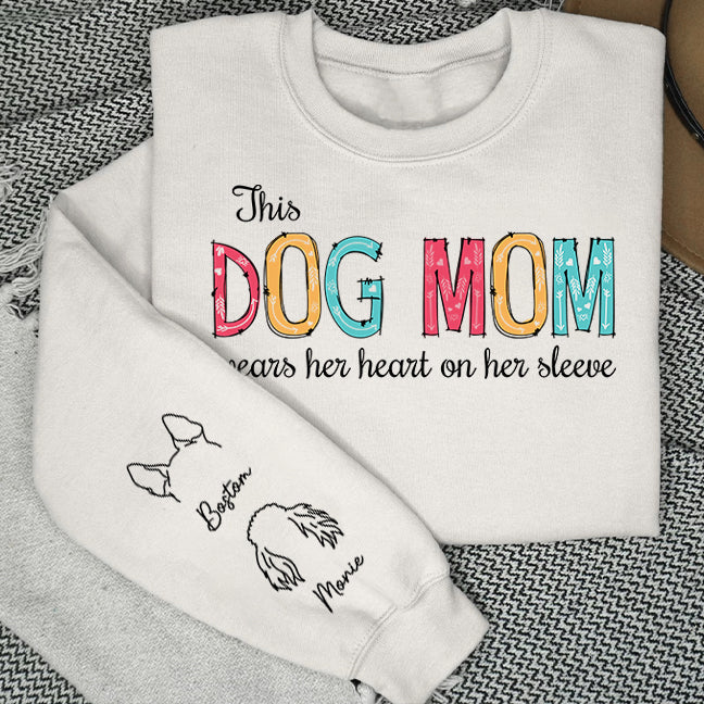 Dog Mom Dad Hearts On Sleeve - Personalized Custom Long Sleeve T-shirt