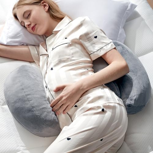 DOWNCOOL Pregnancy Pillow, Maternity Pillow for Pregnant Women, Grey Pregnancy Pillows for Sleeping with Removable Cover, Support for Back, Belly, Legs