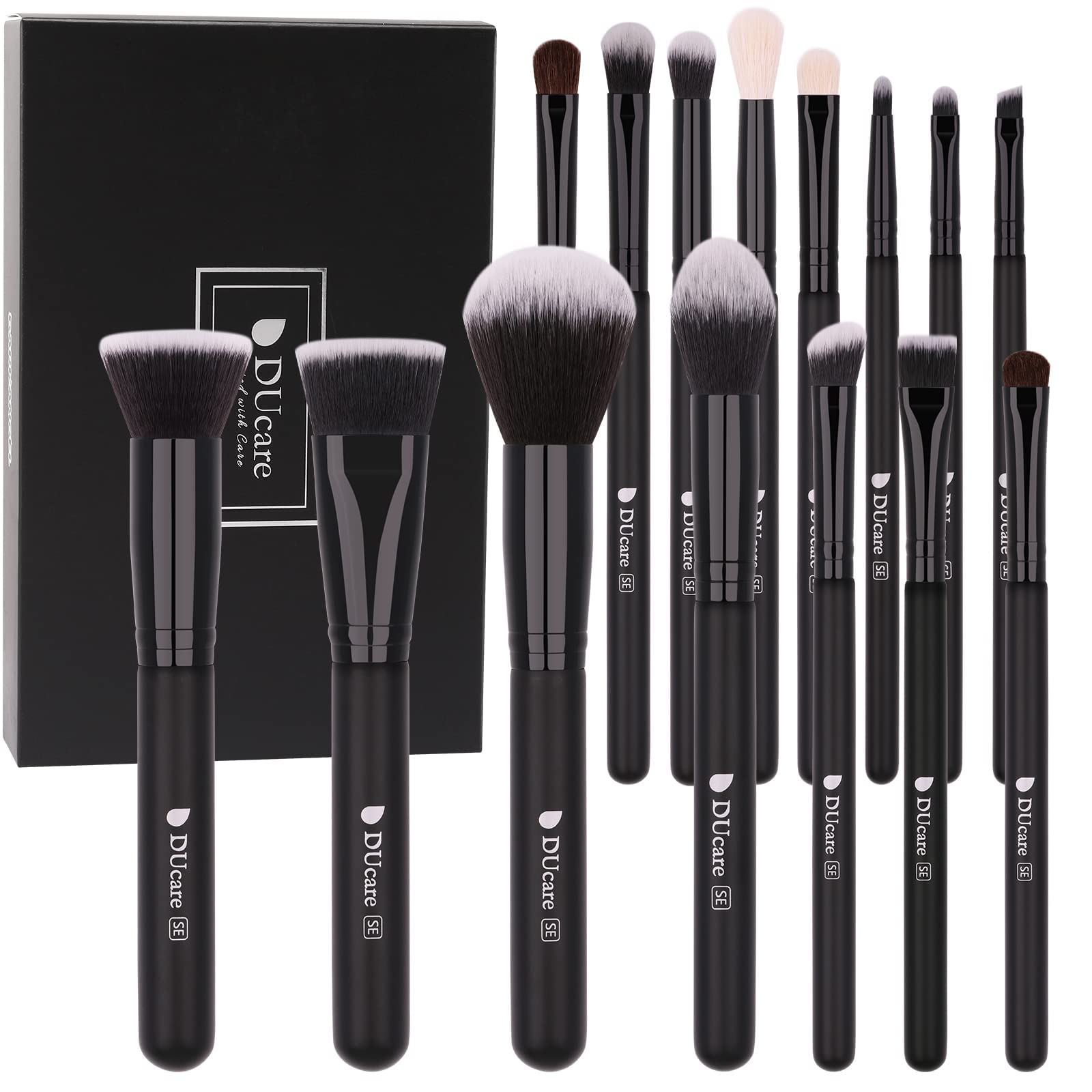 DUcare Makeup Brushes, 15Pcs Premium Synthetic Kabuki Makeup Brush Set, Professional Foundation Concealers Powder Blush Blending Face Eye Shadows Black Brush Sets