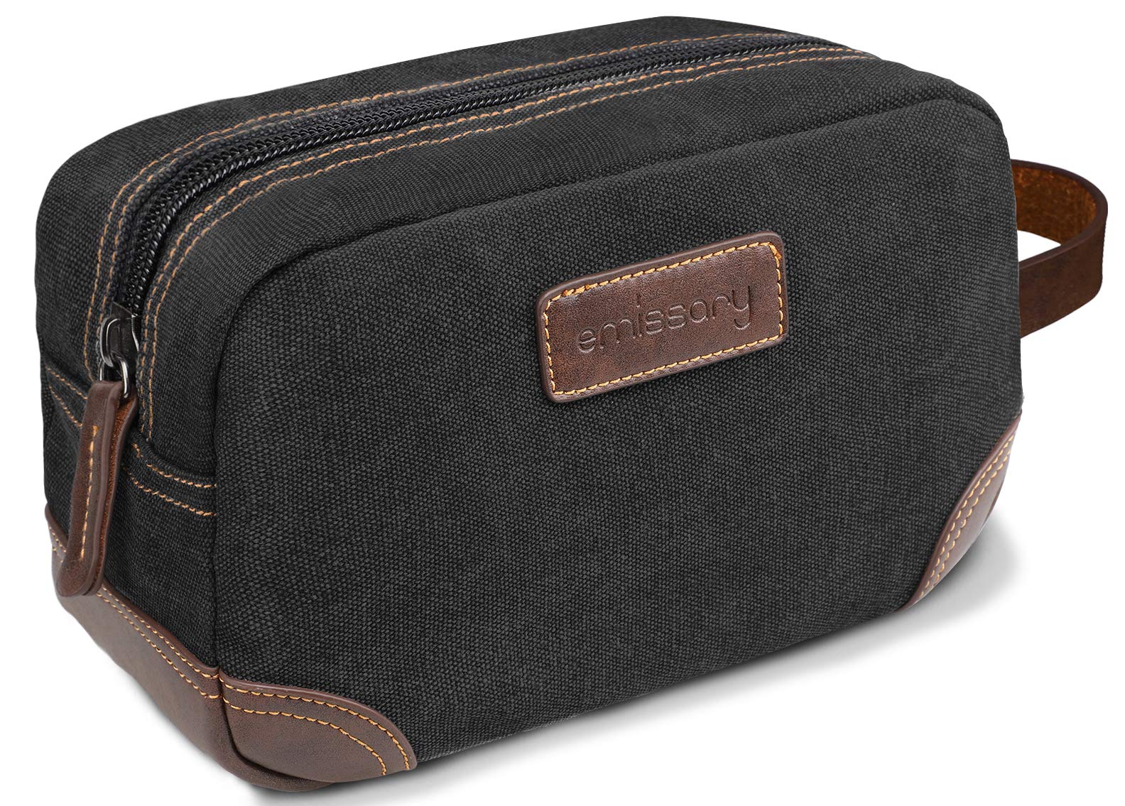 emissary Men's Toiletry Bag, Leather and Canvas Travel Toiletry Bag, Dopp Kit for Men, Travel Bathroom Bag Men's Shaving Kit, Travel Kit Small Bags for Men, Shaving Bag for Travel Accessories (Black)
