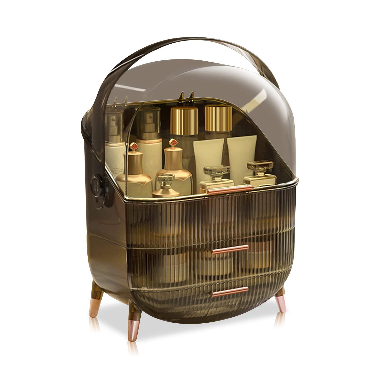 Ergocar Portable Retro Series Multi-Function Make Up Case Dustproof Cosmetic Storage Box,Cosmetics Skin Care Products Jewelry Organizer Case Finishing Box Bathroom Desktop - Retro Grey
