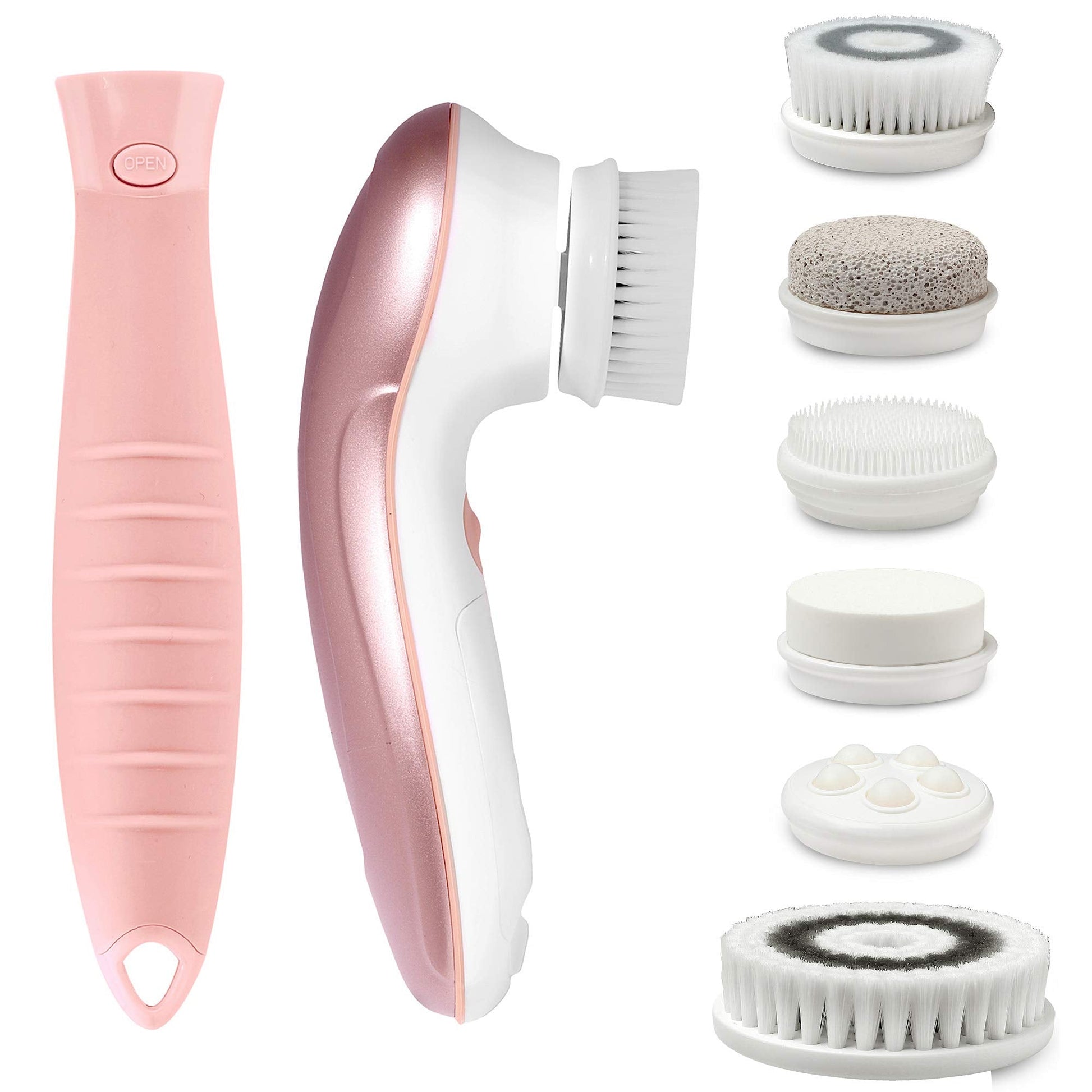 - 6 unique brush heads (includes 1 silicone face brush) and detachable handle in 1 convenient set | Multiple functions to meet all your facial and body cleansing needs
