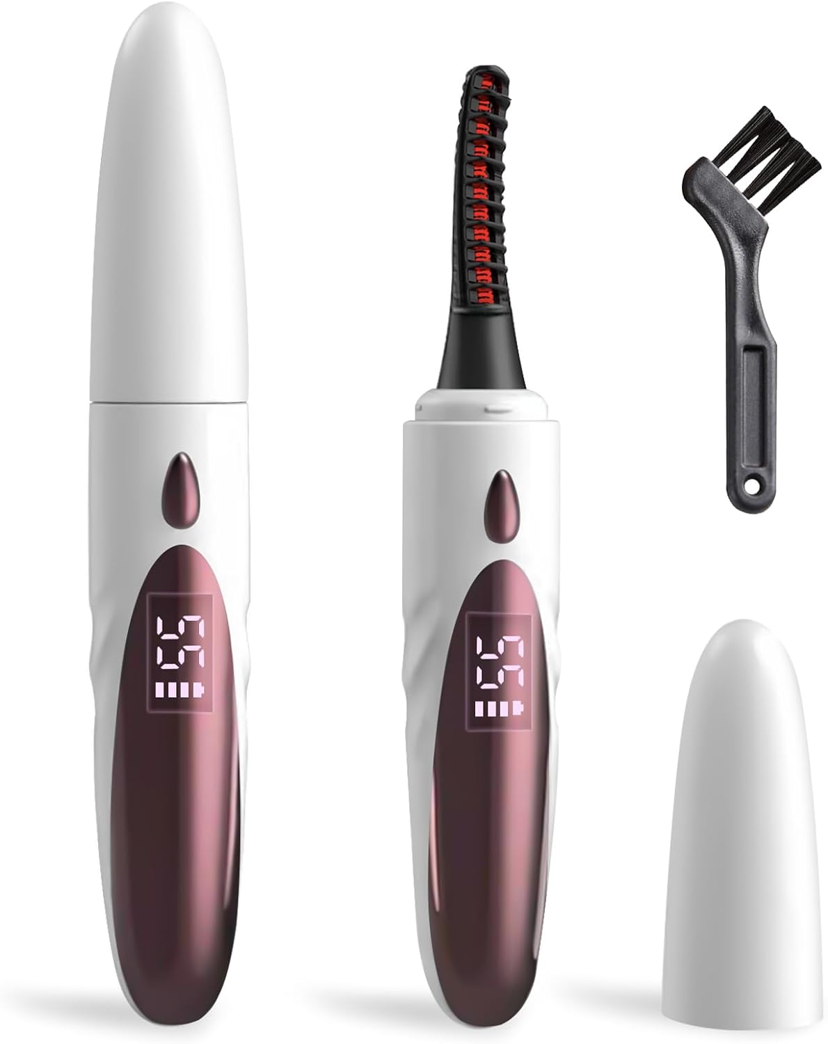 【Natural Curling and Lasting Styling】:Professional curved curl edge design comb brush head is more suitable for your eyelashes,8 seconds fast heat eyelash curler,save your makeup time, can curl all day.