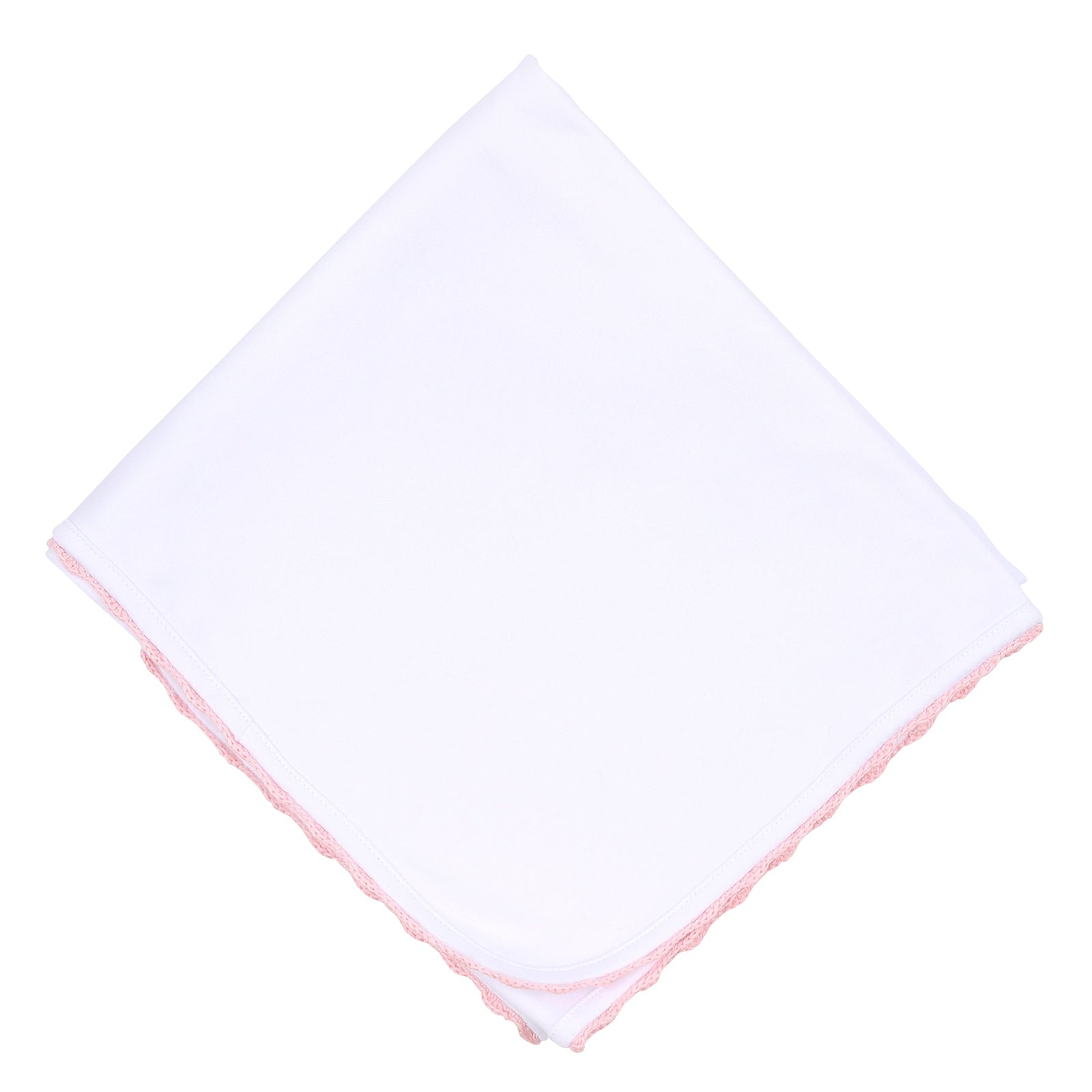 Baby Joy Receiving Blanket with Pink Crochet Trim