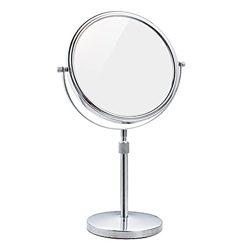 - TALL MAKEUP MIRROR without WOBBLE¦Height Adjustable design. Heard some people complain normal table mirror is too short to use, this magnifying makeup mirror perfectly solve this problem. Telescoping stand is height adjustable from 15.95 to 21.30 inches, with 360 degrees swivel and freestanding function, it’s suitable for tables of all sizes. Very convenient for people in different heights. Ideal for family use.