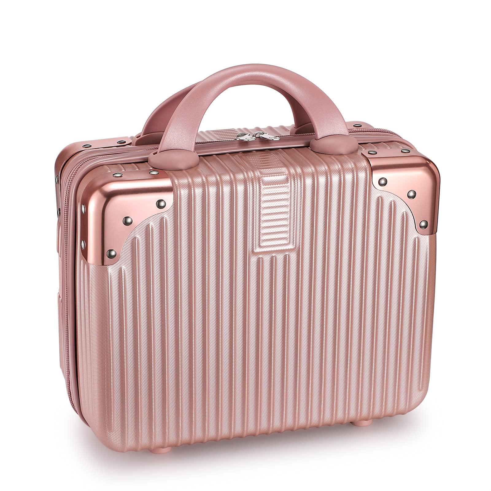 Noverlife Portable Makeup Travel Case Hand Luggage 12 Inch, Pressure-proof ABS Carrying Makeup Case Suitcase with Elastic Band, Small Hard Shell Cosmetic Case for Travel Camping Women Girl - Rose Gold