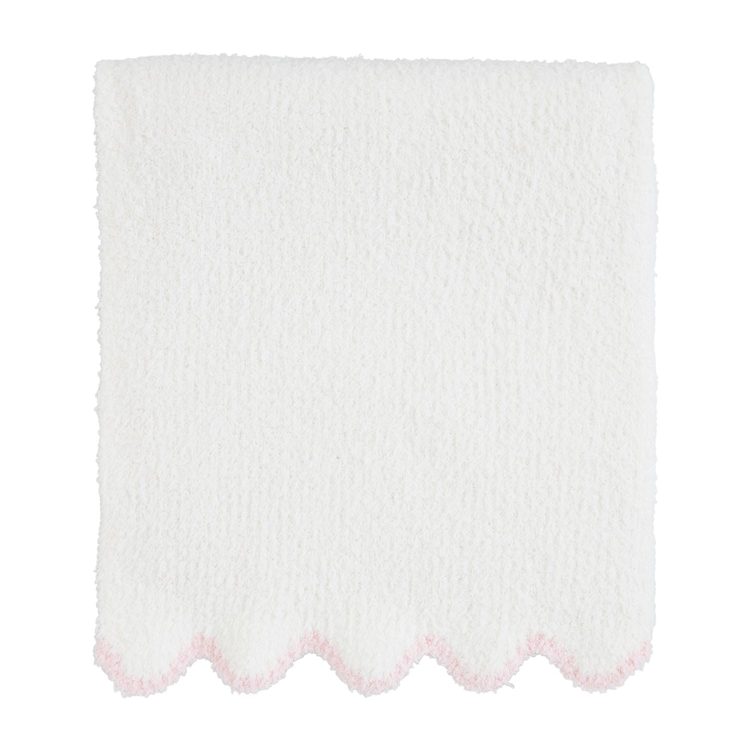 Introducing our Scallop Chenille Blanket - a cozy knit chenille blanket perfect for kids! Its playful contrast scallop trim adds a fun touch to any room. Keep your little ones warm and stylish with this unique blanket.