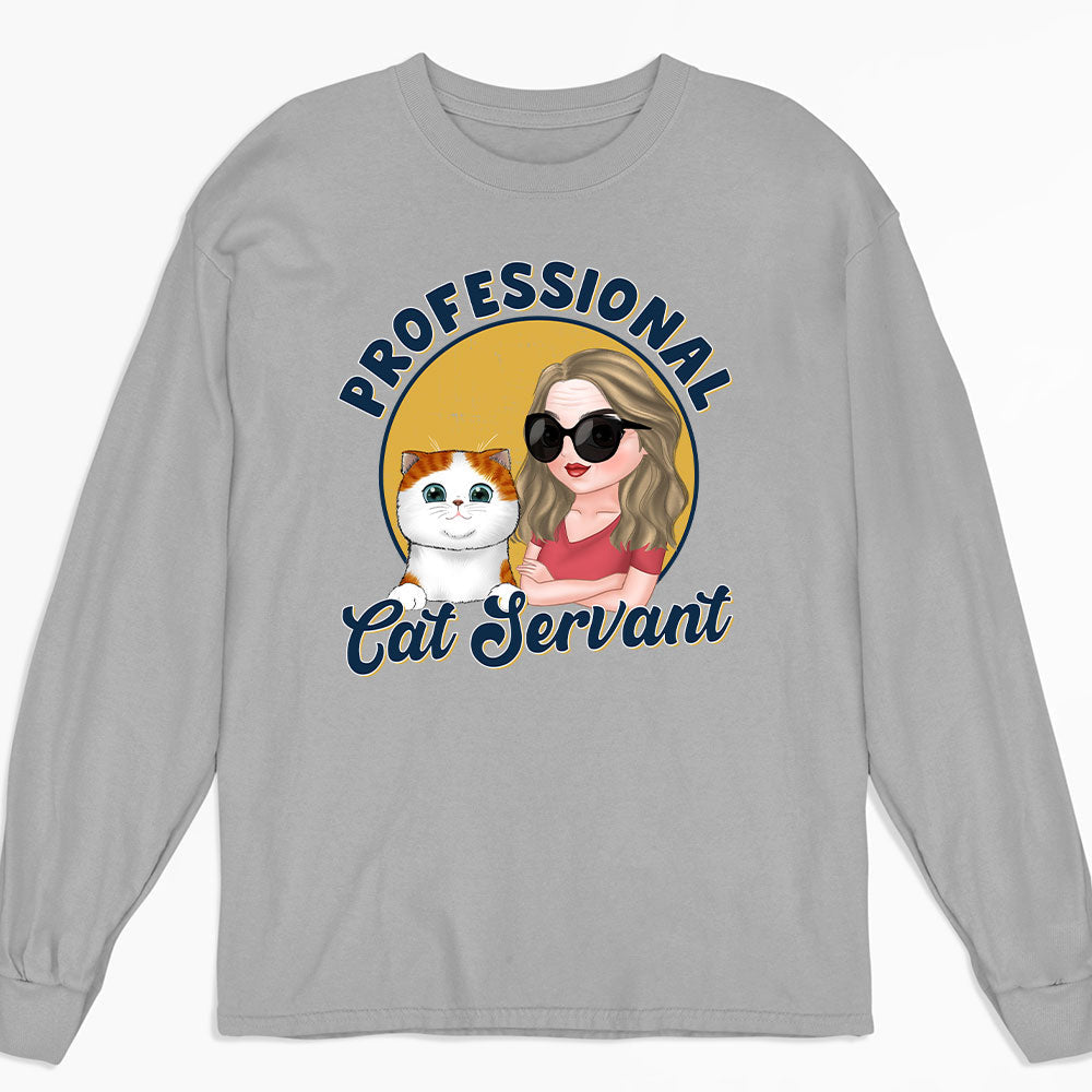 Professional Cat Servant Cartoon - Personalized Custom Long Sleeve T-shirt
