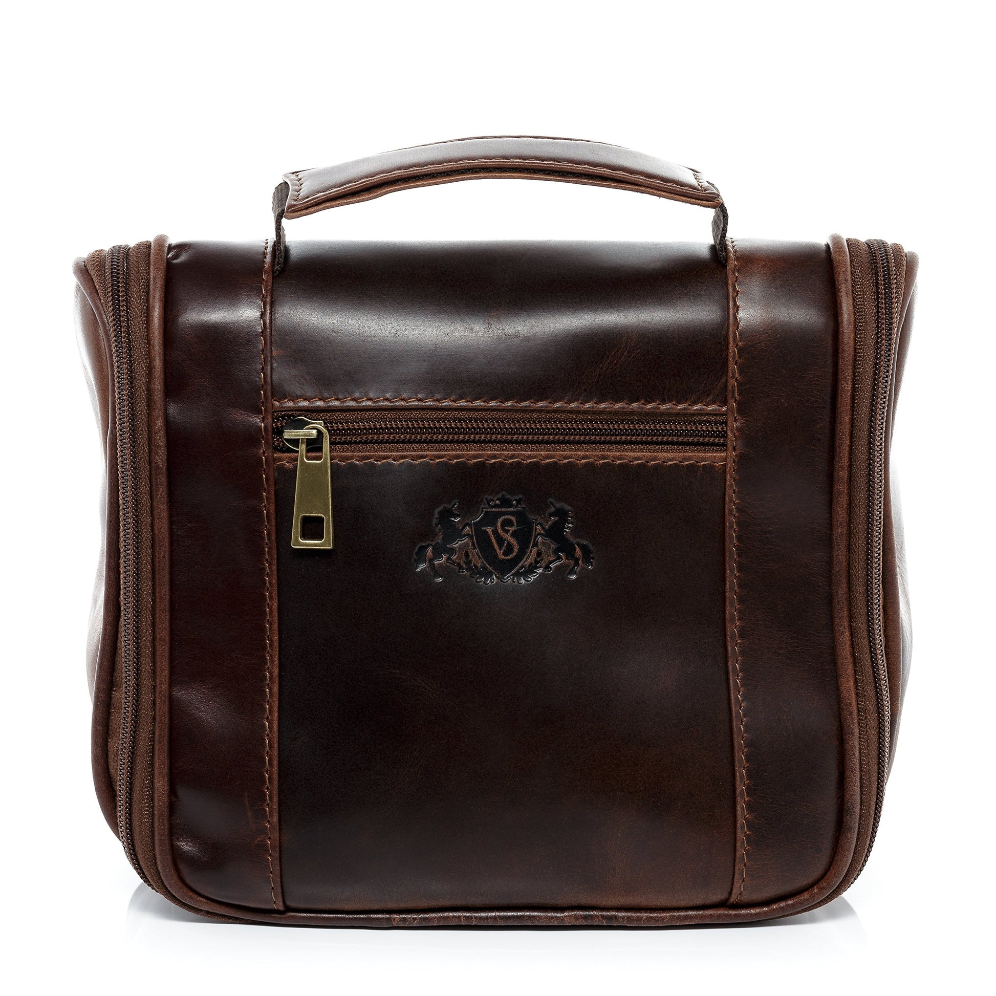 SID & VAIN hanging wash bag HEATHROW Overnight Wash Gym real leather toiletry bag with hook leather bag Unisex brown
