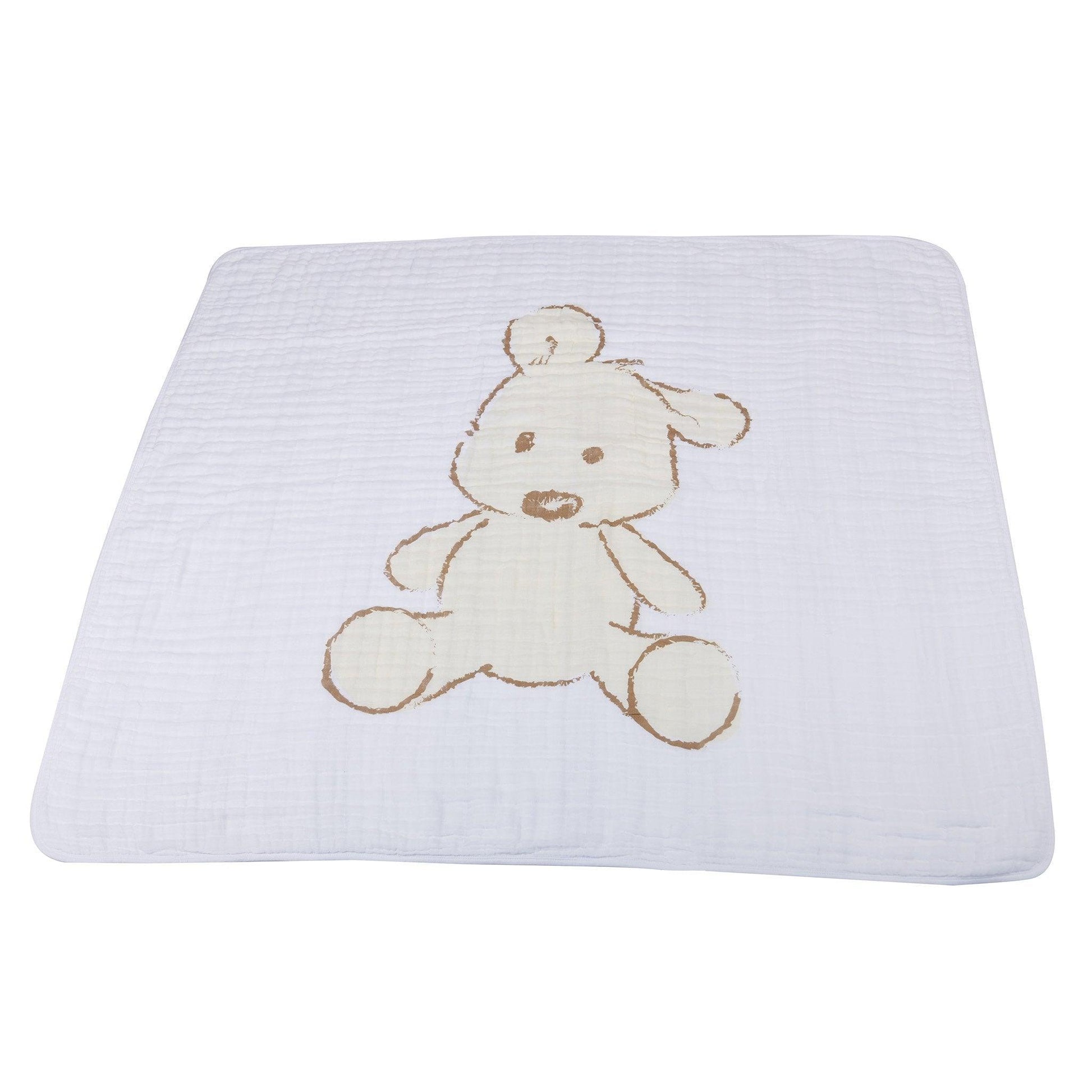 Teddy Bear and Grey Stripe Cotton Muslin Newcastle Blanket