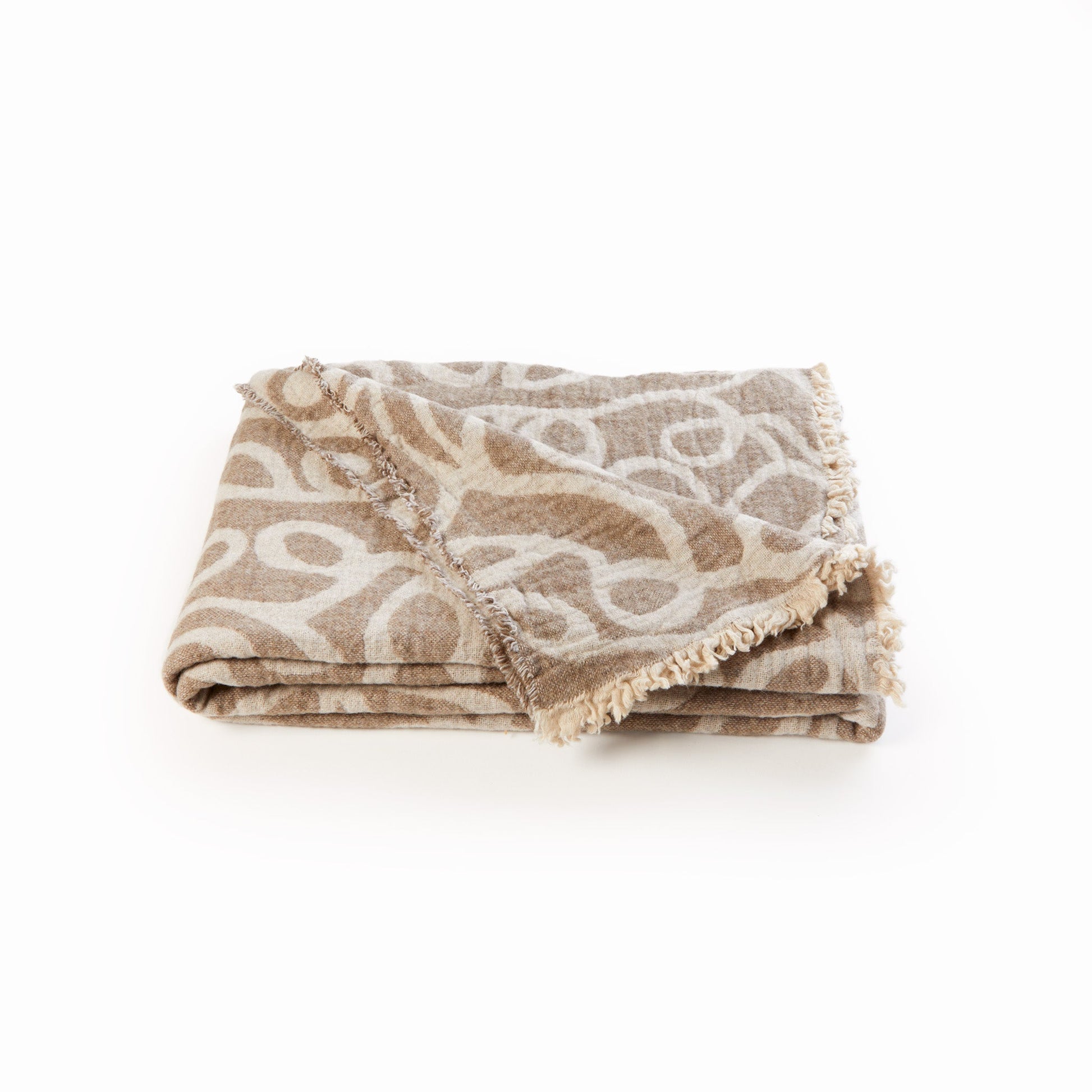 A pretty throw blanket, draped ever-so-effortlessly across the foot of a bed, over the arm of a chair, or along the back of a sofa, is often the finishing touch a room needs. And it's a real bonus when that throw is light, cuddly, and just the size for wrapping around your shoulders when you need an extra layer. Our Thiago Throw is all these things and then some. Woven at a decades-old Italian mill of cotton, polyester, wool, and other fibers, it features an abstract leaf-and-vine pattern on its body and fringe along two sides, and it comes in two lovely colors.