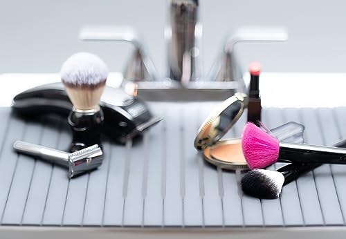 Details: -You're going to love the extra counter space with this roll up makeup mat. Perfect for small bathrooms, dorm rooms, campers, and RVs. -Flat more more sink space. Roll for storage. Be sure to measure your sink for the best fit. You're going to love the extra counter space with this rollable makeup mat. Perfect for bathrooms, dorm rooms, campers, and RVs. - Heat resistant up to 450 degrees Fahrenheit- ideal for curling irons, flat irons, hairdryers, and heated styling brushes. - Silicone with nylon core. Holds up to 5 lbs. No bowing. Declutter and organize with this sturdy, slip-resistant silicone rubber mat. - Easy lightweight fit in luggage or handbag. - Clean with soap and water. Dishwasher safe