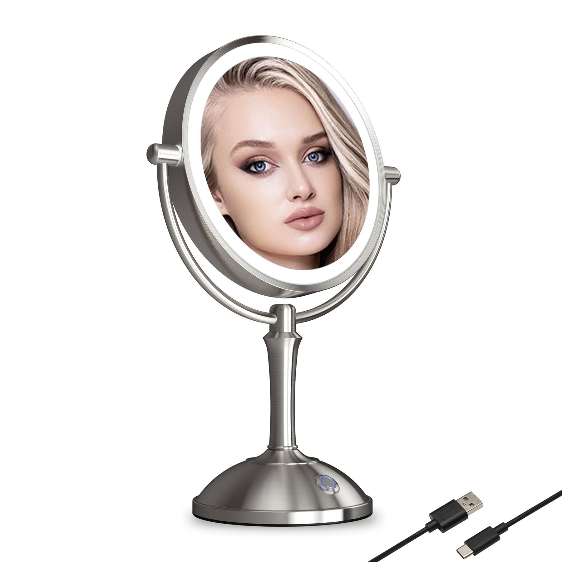 TUSHENGTU Makeup Mirror with Lights 10x Magnifying Mirror Nickel Finish and 360° Rotation and USB Recharge.(106N10X)