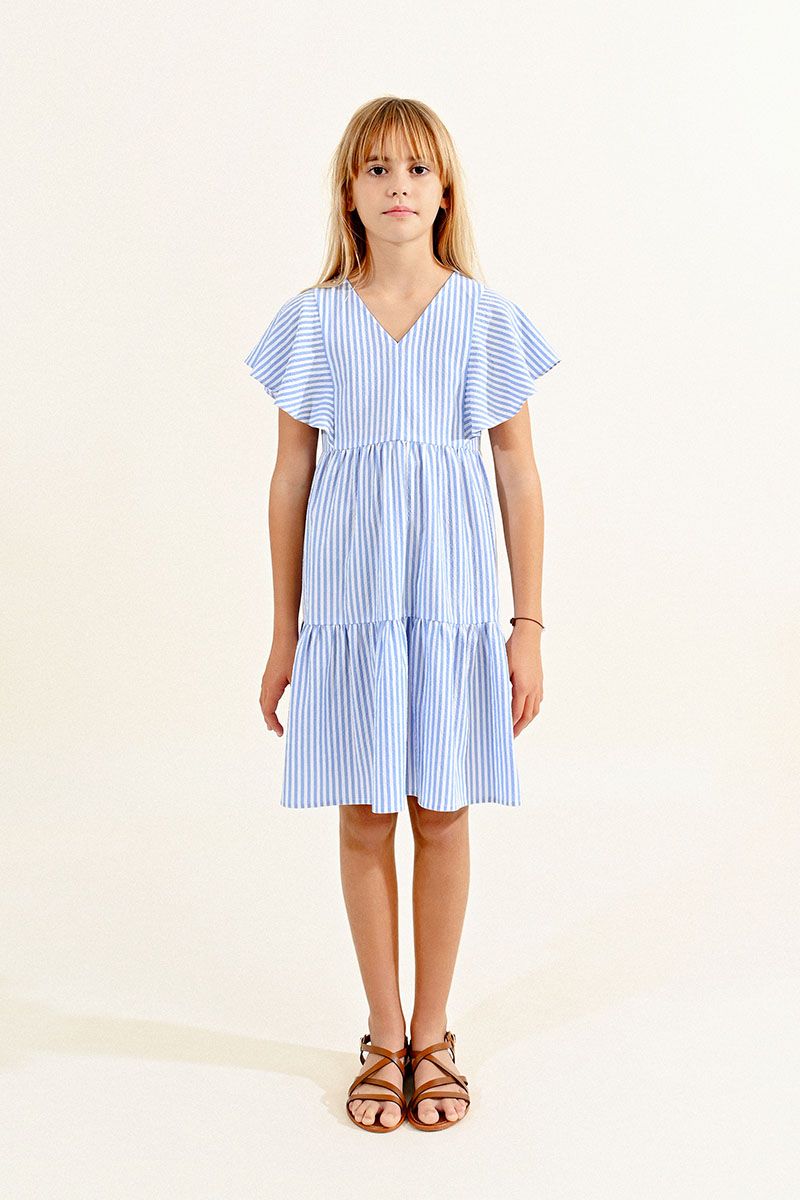 Woven Dress, Blue Ticking Stripe